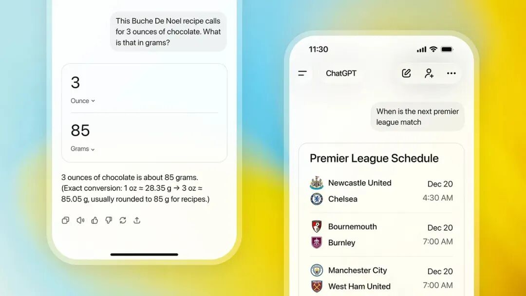 她透露,ChatGPT 正在从一个反应式、以文本为核心的产品,转变为一个更直观、更能贴合你各种任务需求的工具。从纯文字向多媒体和动态界面转变,是这一进化过程中的重要一步。